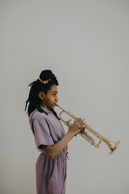 This scale requires no sharps or flats, making it excellent for developing clean finger technique and a consistent tone. Many trumpet scale PDF resources include articulation patterns and rhythmic variations. Mastering Bb Major builds confidence and provides a solid base for tackling more complex scales and pieces. Practice slowly and deliberately, focusing on evenness and clarity of each note.